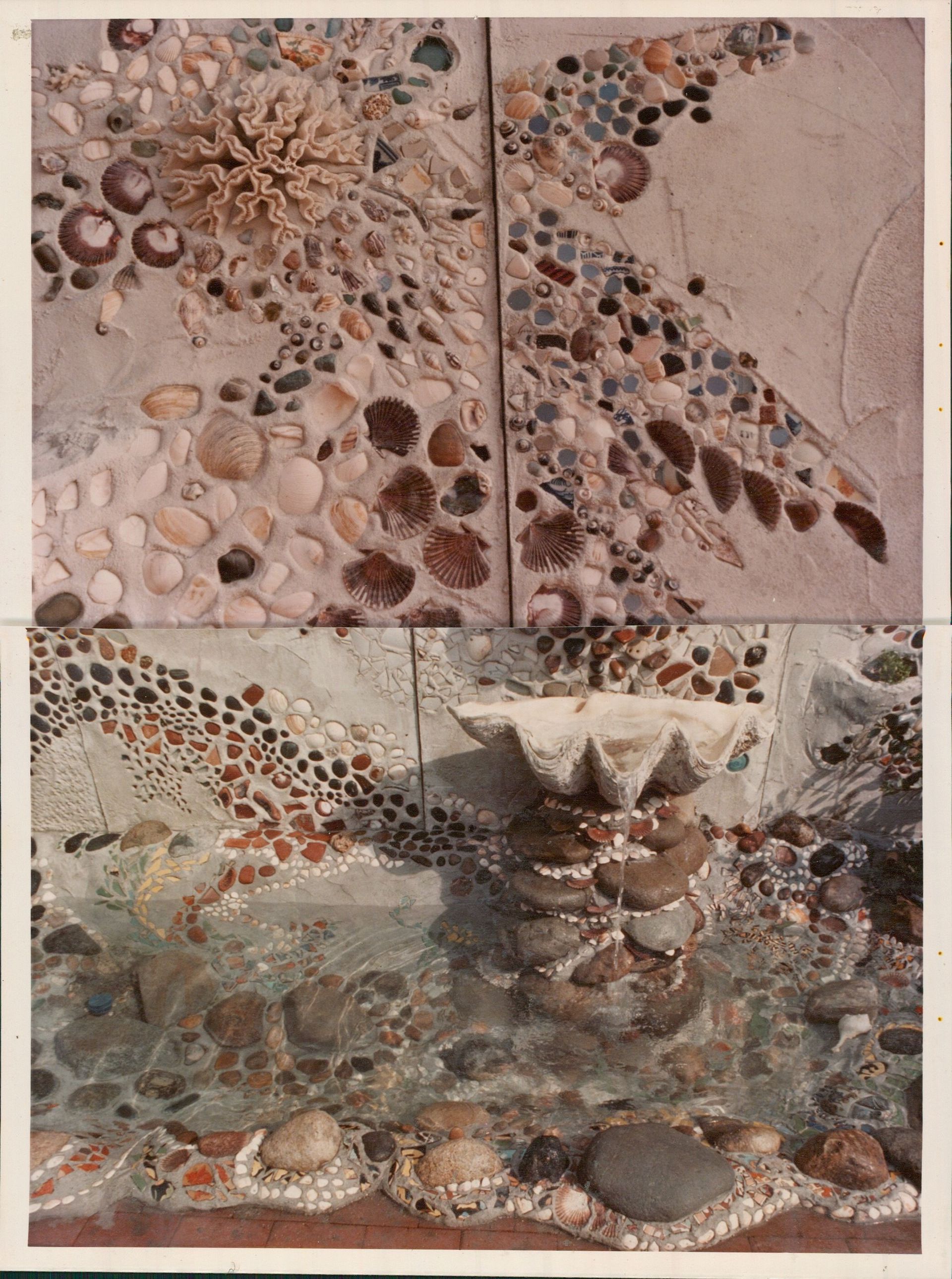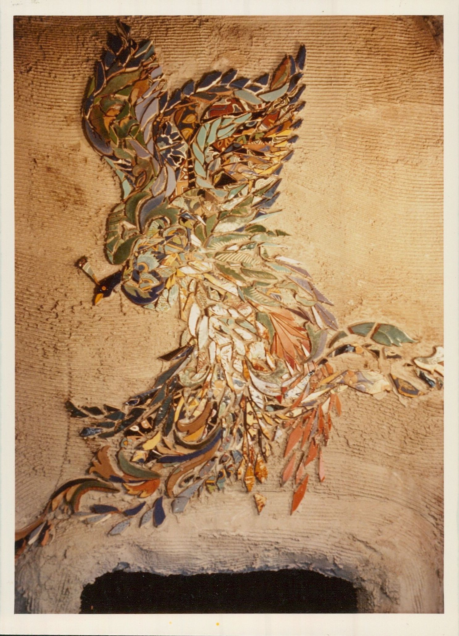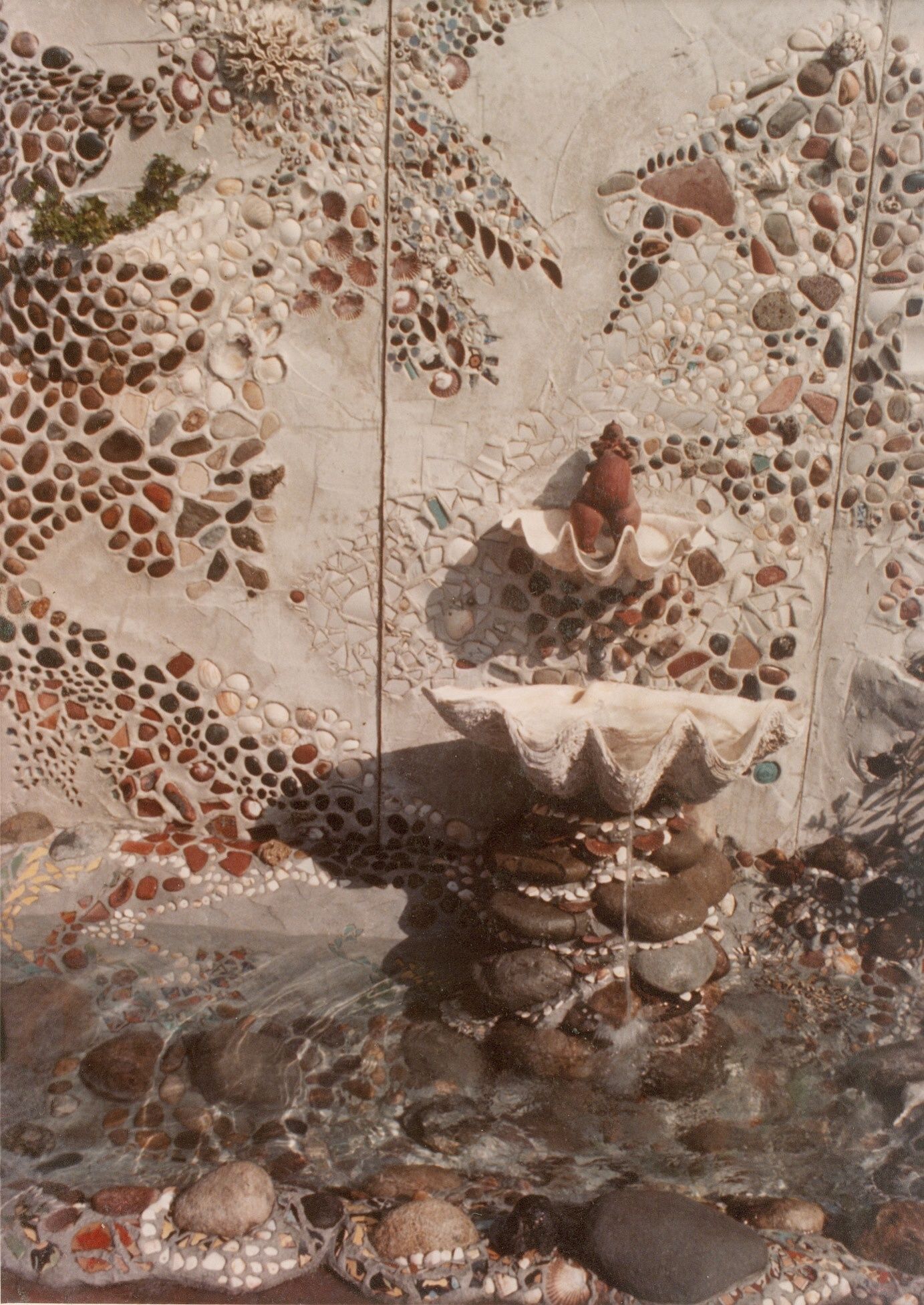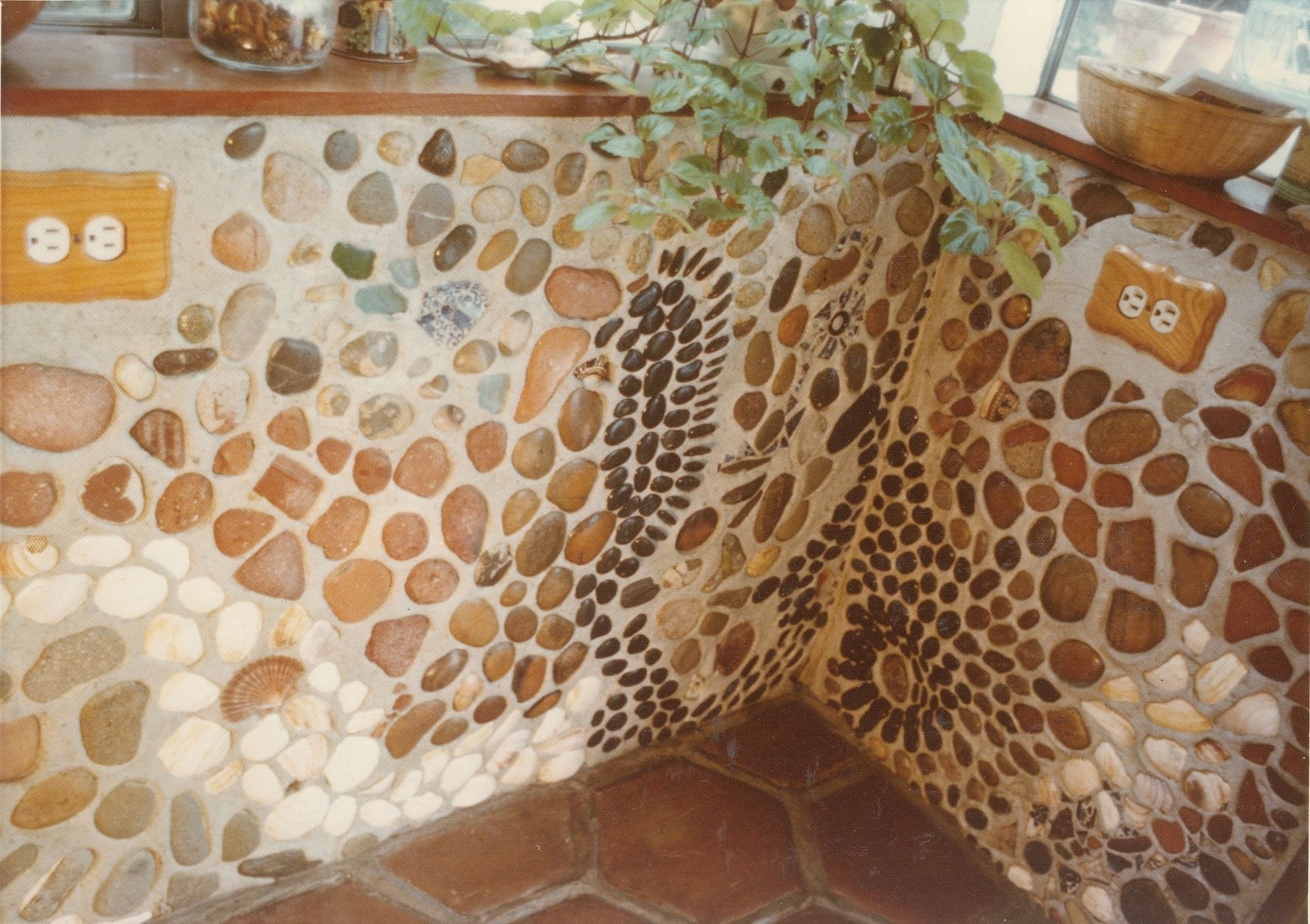 He began mixing his tile mosaic with stonework. Moving to Northern California, the mosaics evolved into natural stone, shapes, color, and much heavier material. Both forms being a pattern language.