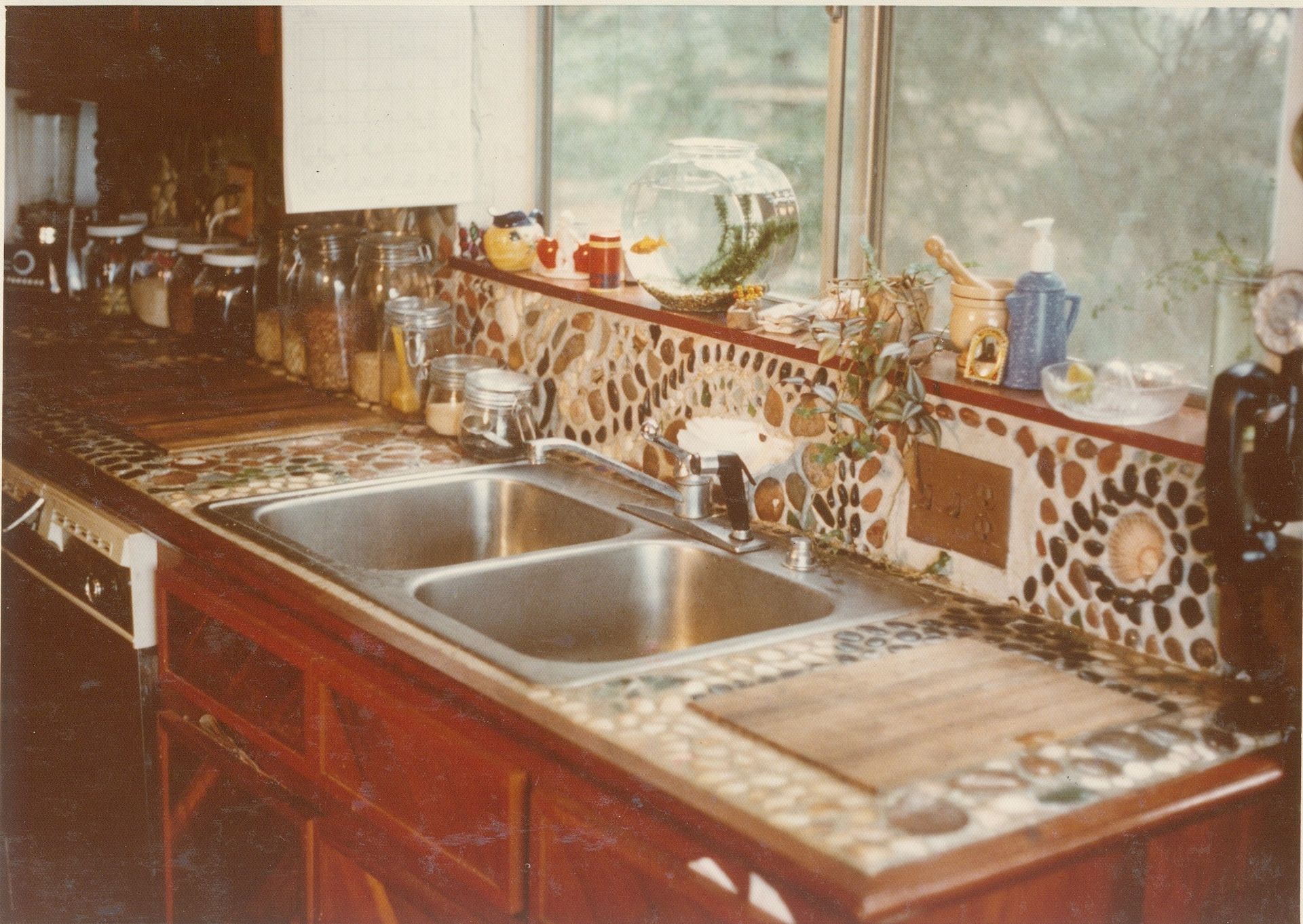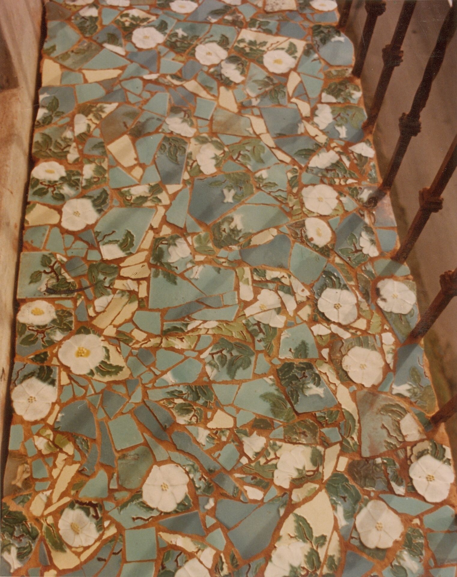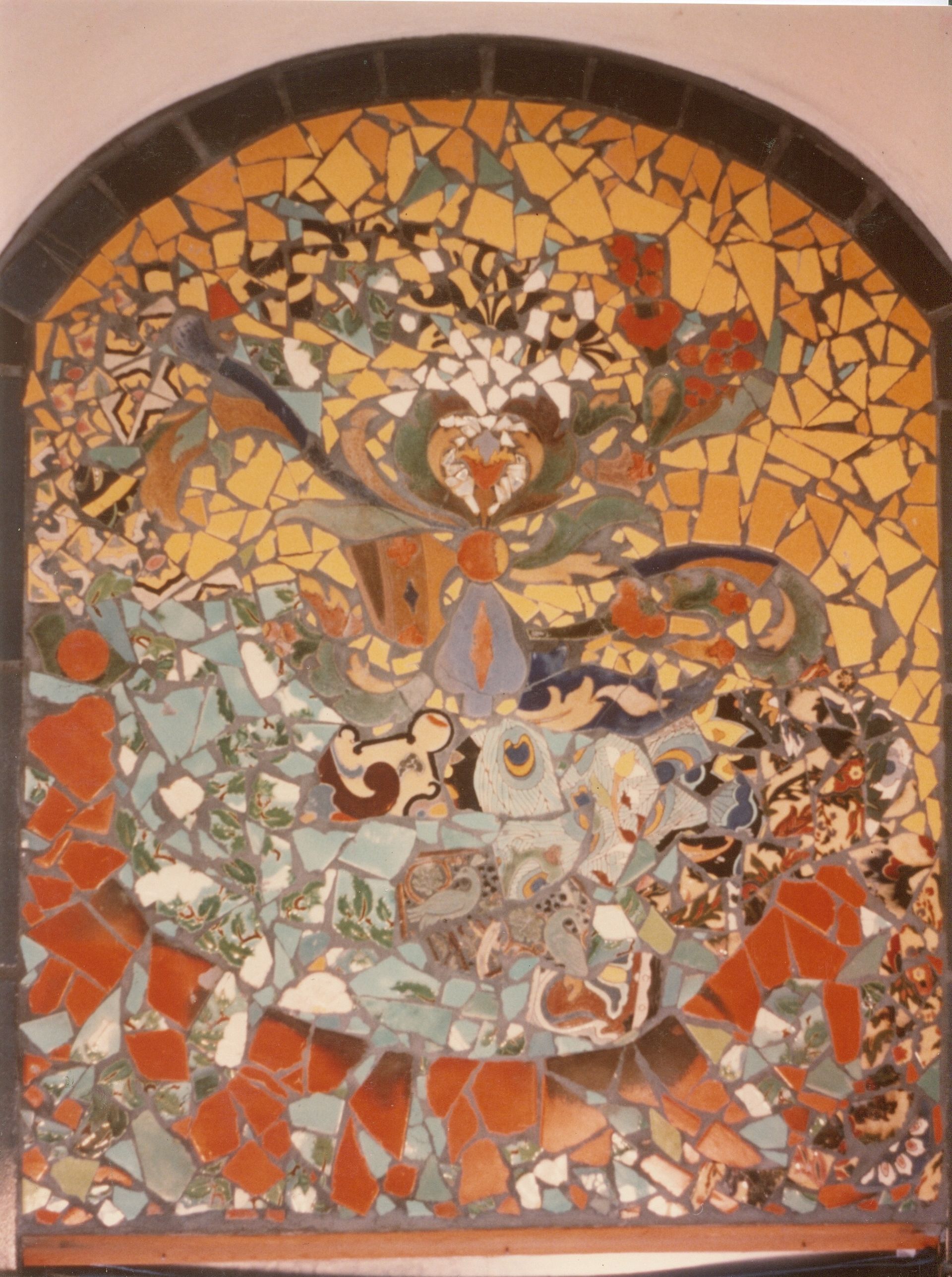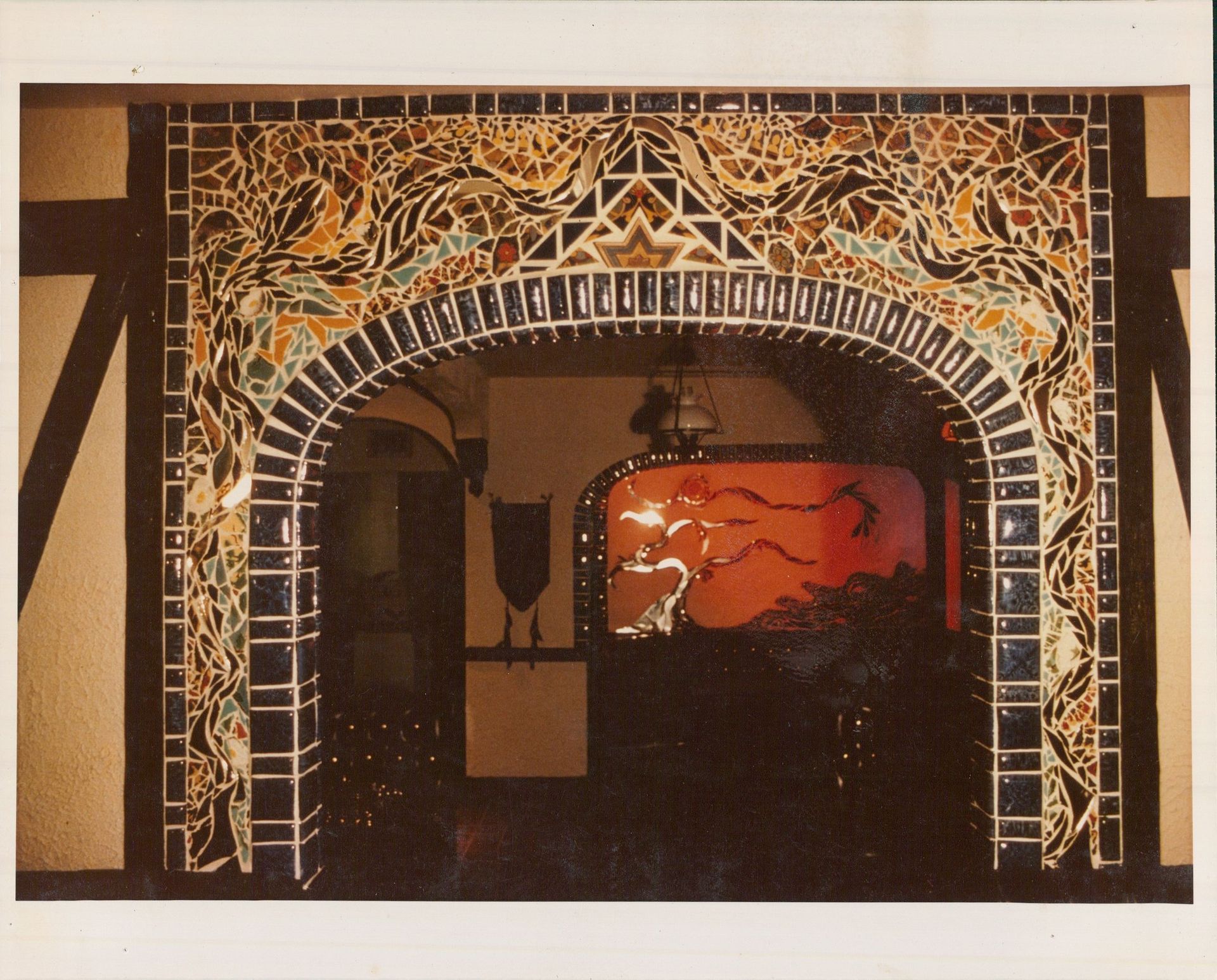 He began mixing his tile mosaic with stonework. Moving to Northern California, the mosaics evolved into natural stone, shapes, color, and much heavier material. Both forms being a pattern language.